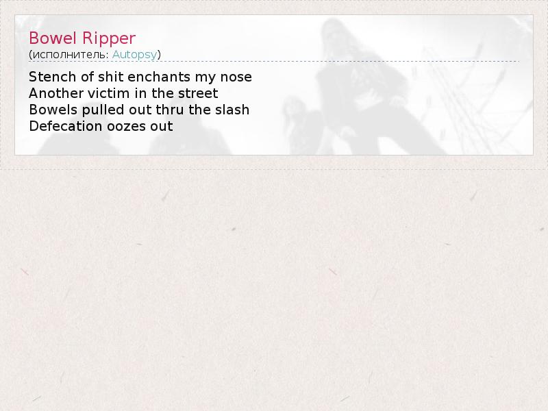 А как ты думаешь, о чем песня "Bowel Ripper" ?