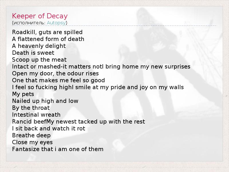 А как ты думаешь, о чем песня "Keeper of Decay" ?