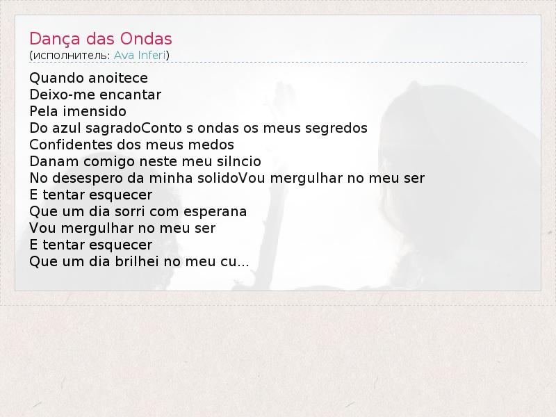 А как ты думаешь, о чем песня "Dança das Ondas" ?