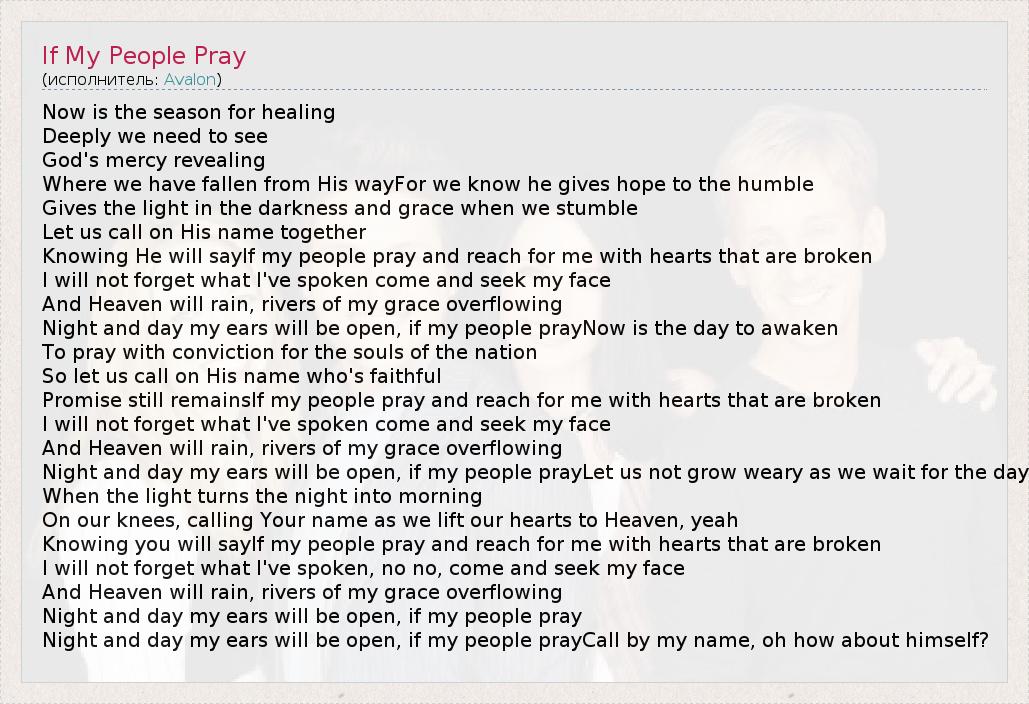 А как ты думаешь, о чем песня "If My People Pray" ?