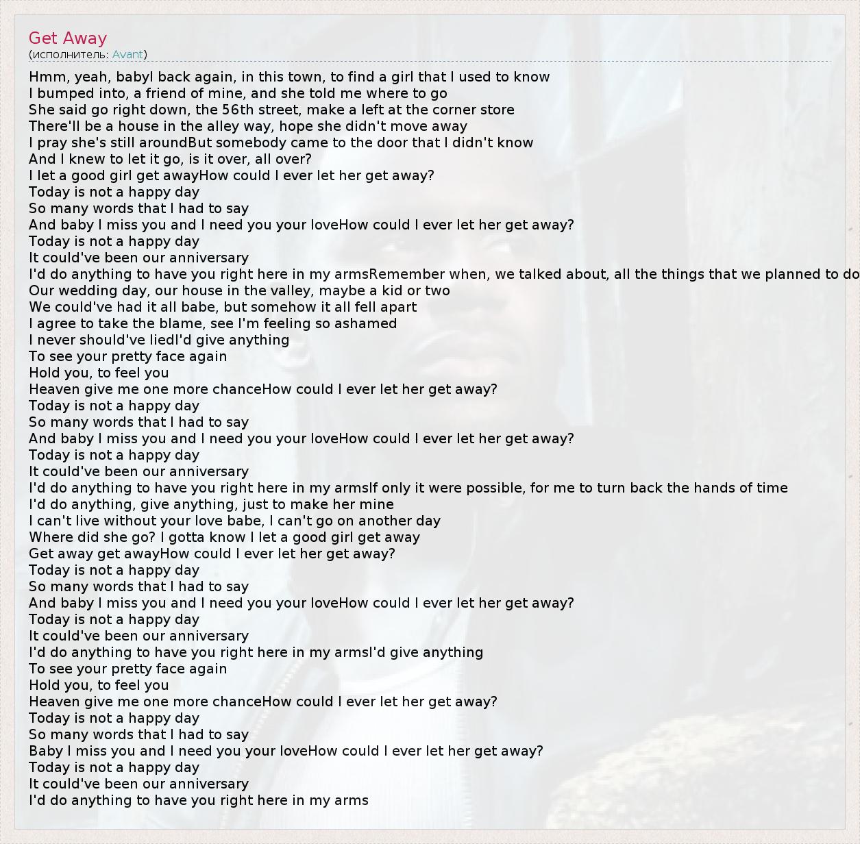 And baby I miss you and I need you your loveHow could I ever let her get away?