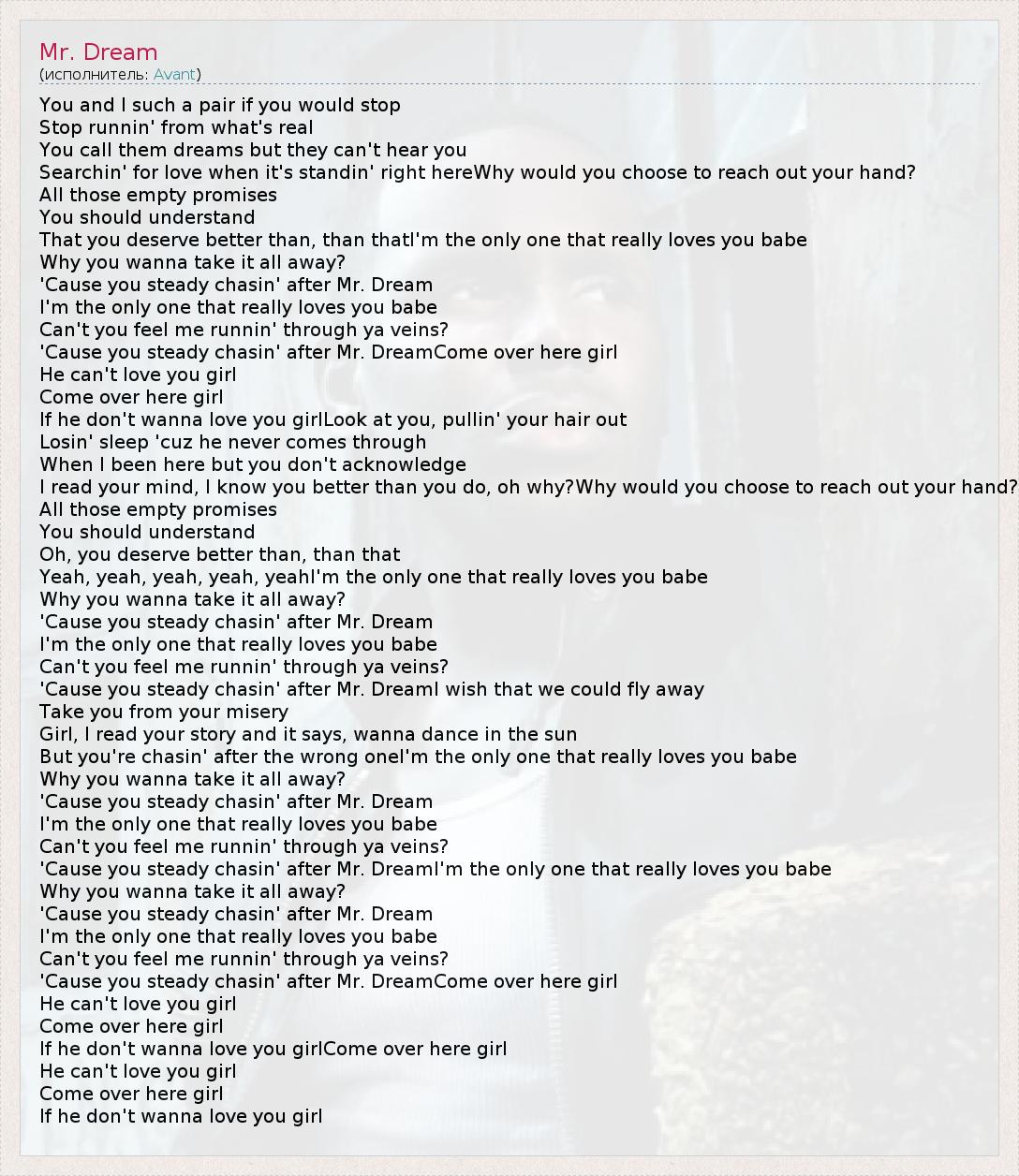 А как ты думаешь, о чем песня "Mr. Dream" ?