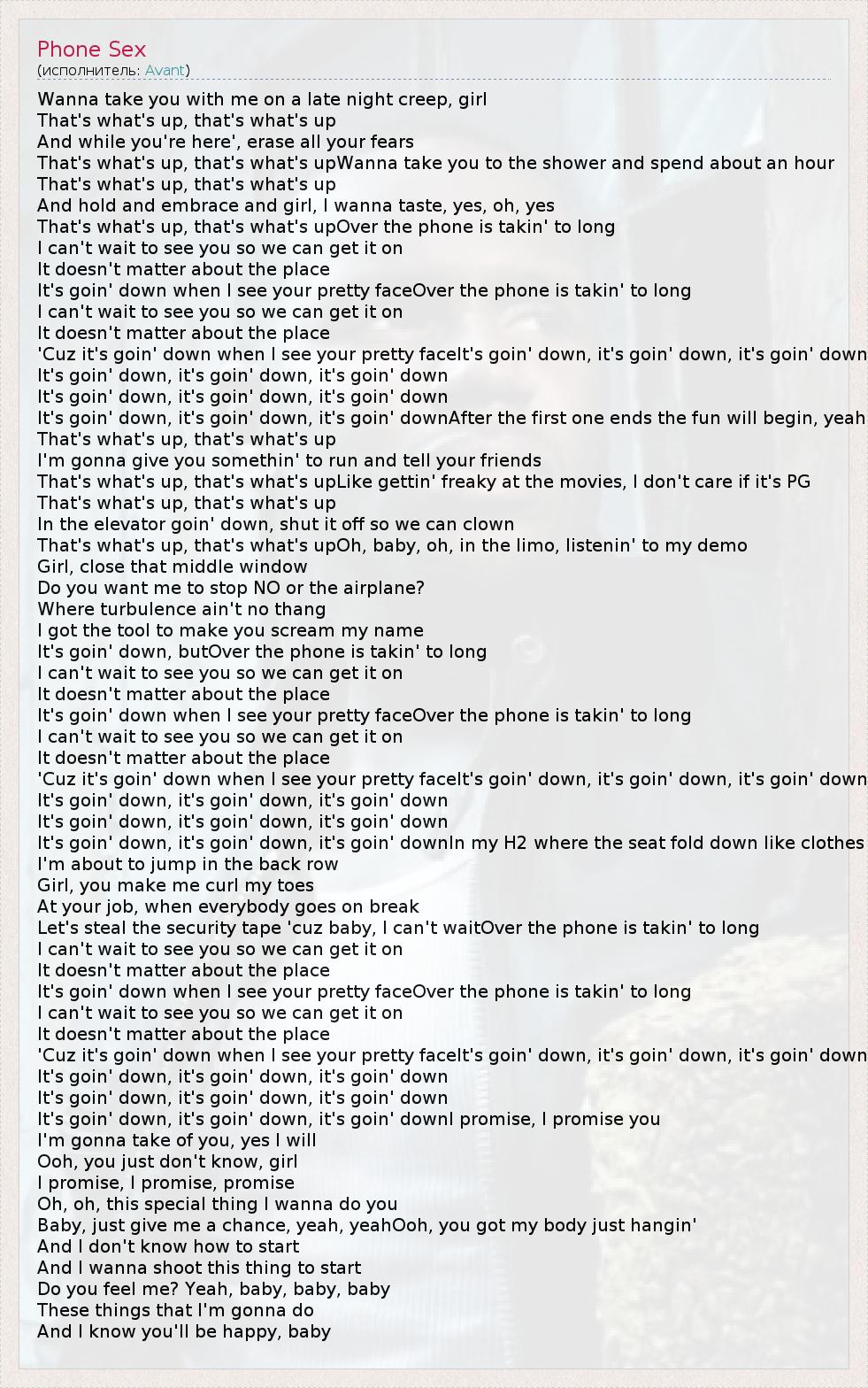 А как ты думаешь, о чем песня "Phone Sex" ?