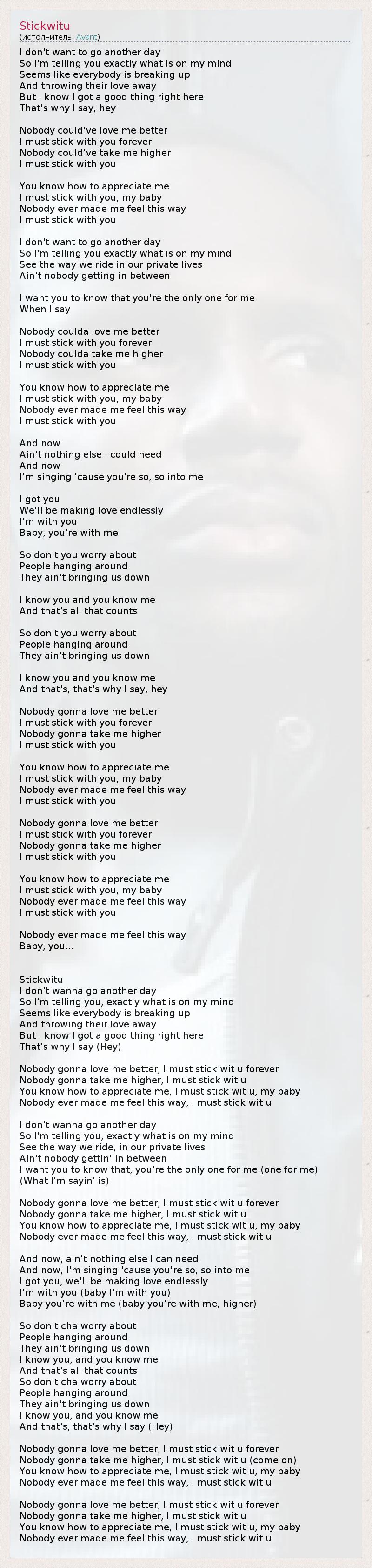 А как ты думаешь, о чем песня "Stickwitu" ?