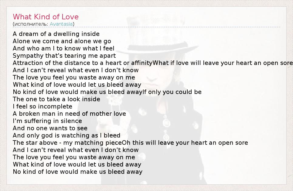 А как ты думаешь, о чем песня "What Kind of Love" ?