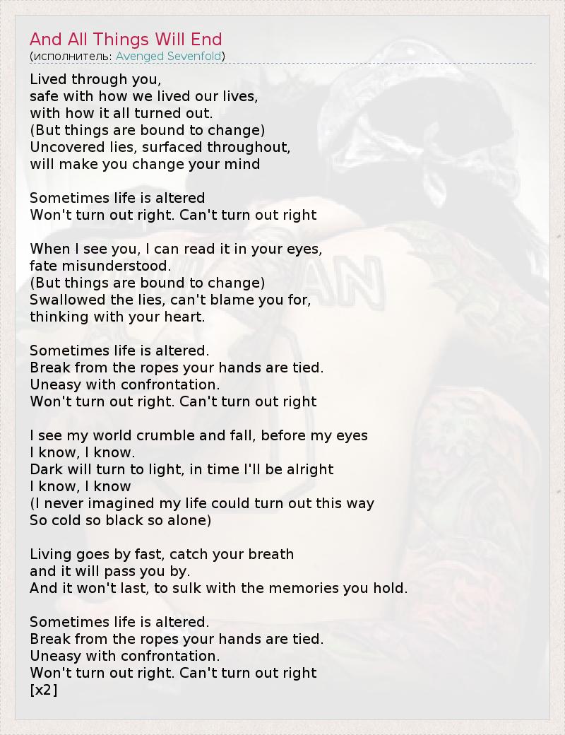 А как ты думаешь, о чем песня "And All Things Will End" ?