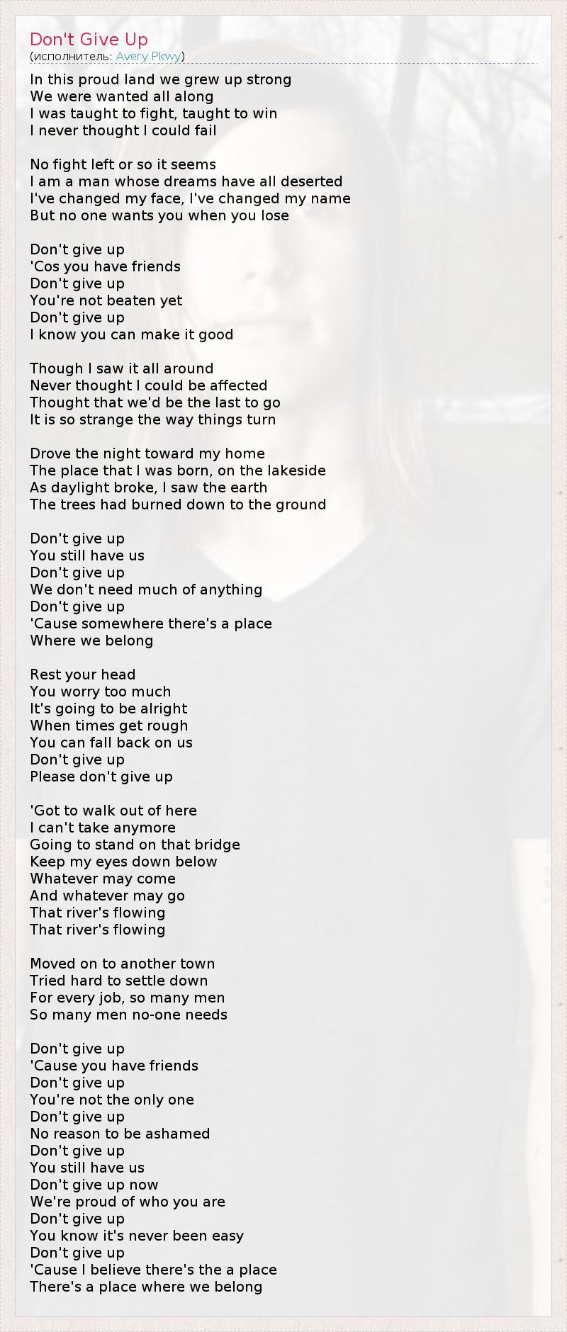 А как ты думаешь, о чем песня "Don't Give Up" ?