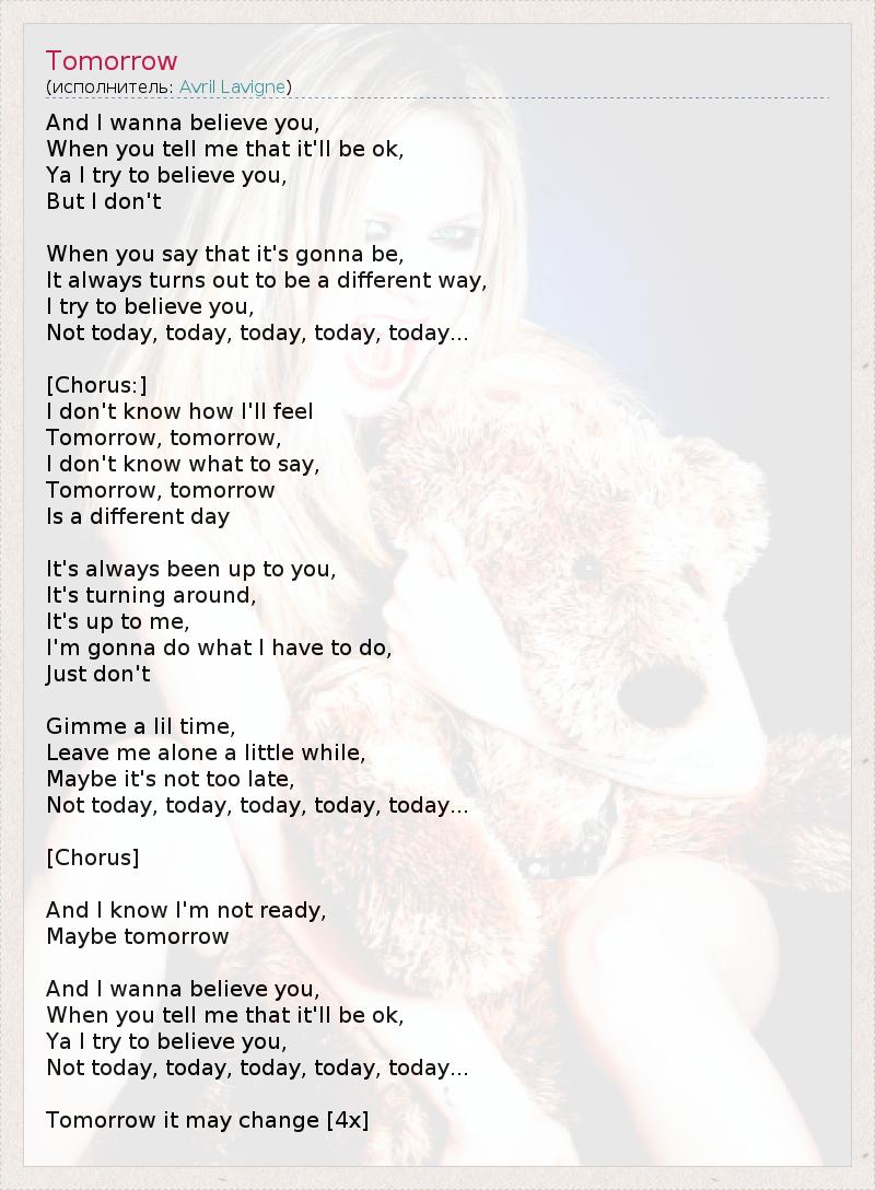 А как ты думаешь, о чем песня "Tomorrow" ?