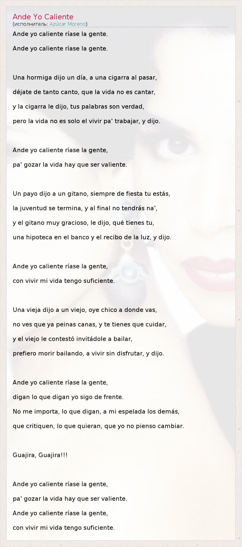 А как ты думаешь, о чем песня "Ande Yo Caliente" ?