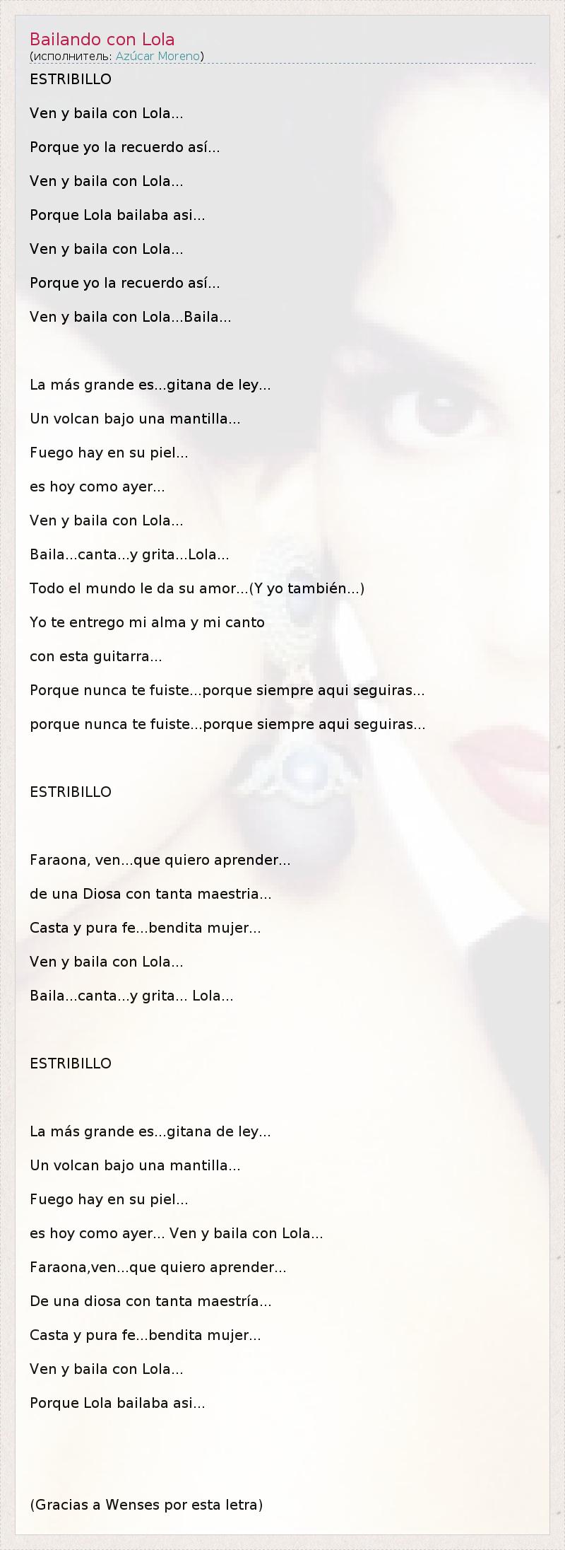 А как ты думаешь, о чем песня "Bailando con Lola" ?