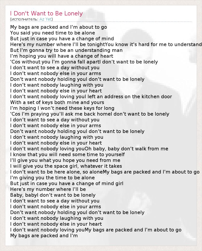 А как ты думаешь, о чем песня "I Don't Want to Be Lonely" ?