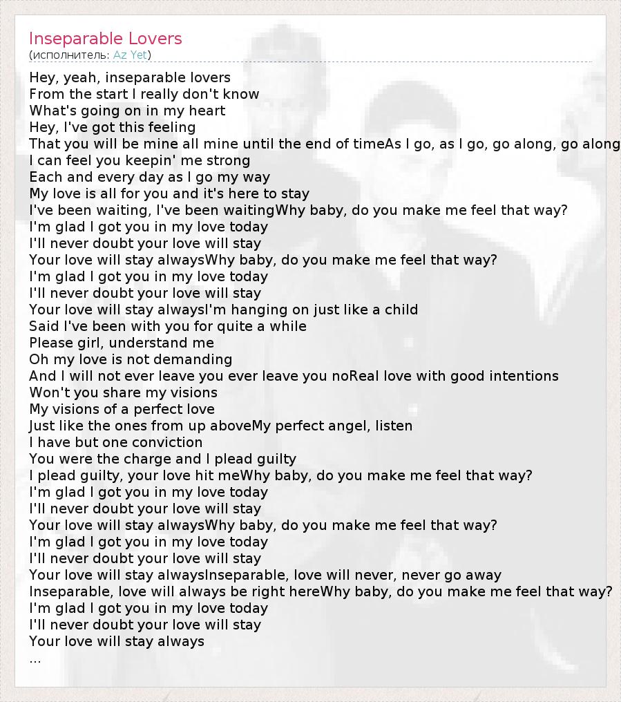 Inseparable, love will always be right hereWhy baby, do you make me feel that way?