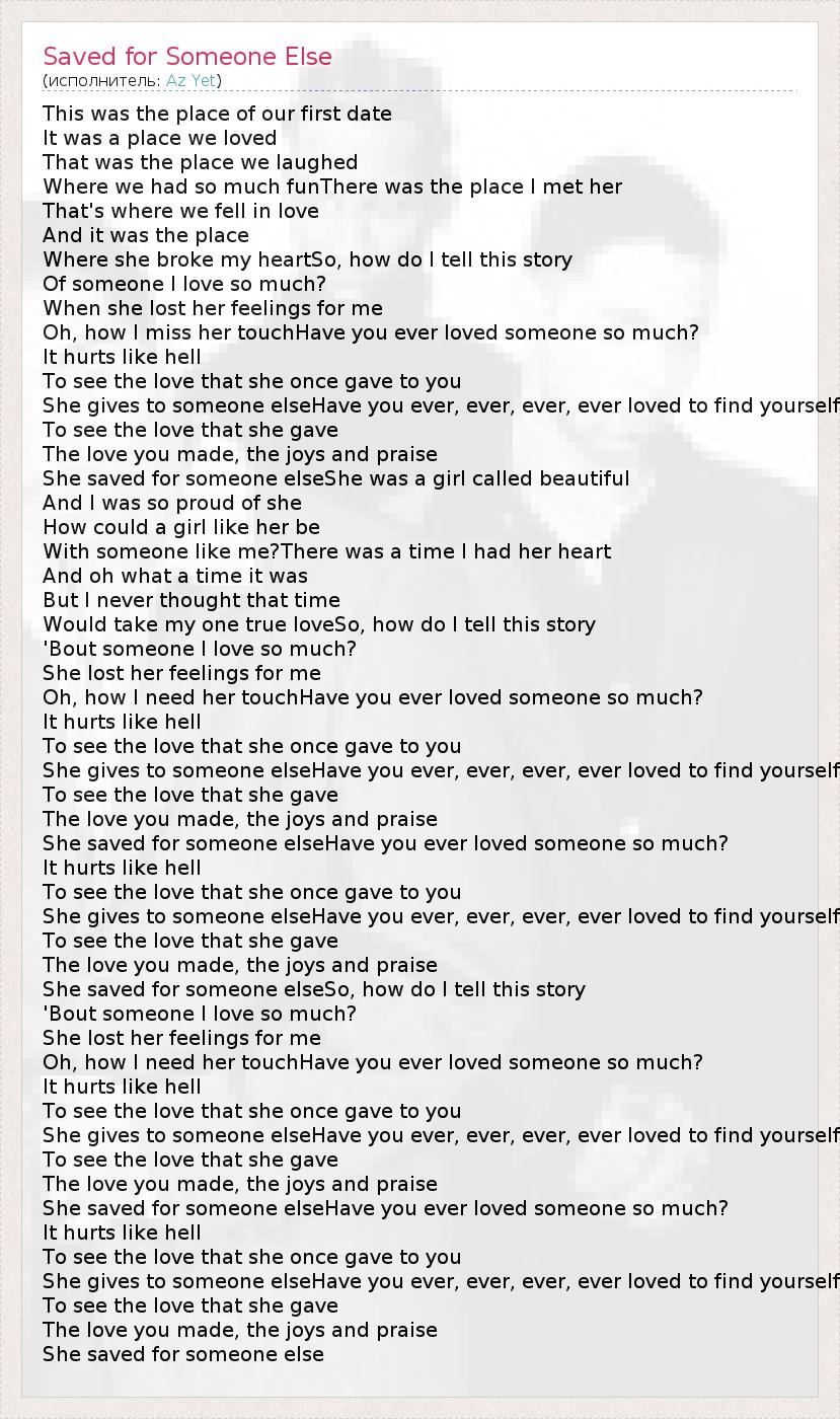 А как ты думаешь, о чем песня "Saved for Someone Else" ?