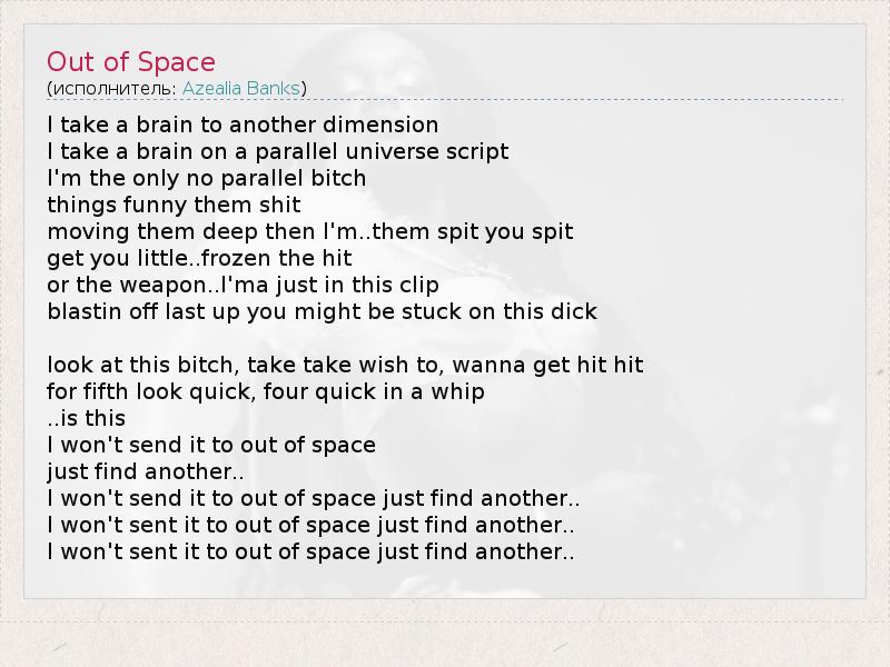 Это интересно:Азилия Бэнкс (родилась 31 мая 1991 года в Гарлеме, Нью-Йорк) — американская певица, рэпер и автор песен из Гарлема (Нью-Йорк). Бэнкс прославилась в 2011 году, когда возглавила «Список крутых» в журнале New Musical Express. В декабре того же года она была объявлена среди номинантов опроса BBC Sound of 2012, где в итоге заняла третье место. Её дебютный сингл «212 (feat. Lazy Jay)», записанный... продолжение