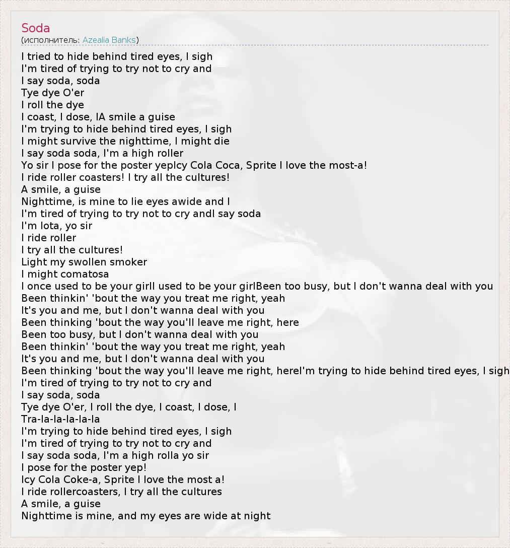 Это интересно:Азилия Бэнкс (родилась 31 мая 1991 года в Гарлеме, Нью-Йорк) — американская певица, рэпер и автор песен из Гарлема (Нью-Йорк). Бэнкс прославилась в 2011 году, когда возглавила «Список крутых» в журнале New Musical Express. В декабре того же года она была объявлена среди номинантов опроса BBC Sound of 2012, где в итоге заняла третье место. Её дебютный сингл «212 (feat. Lazy Jay)», записанный... продолжение