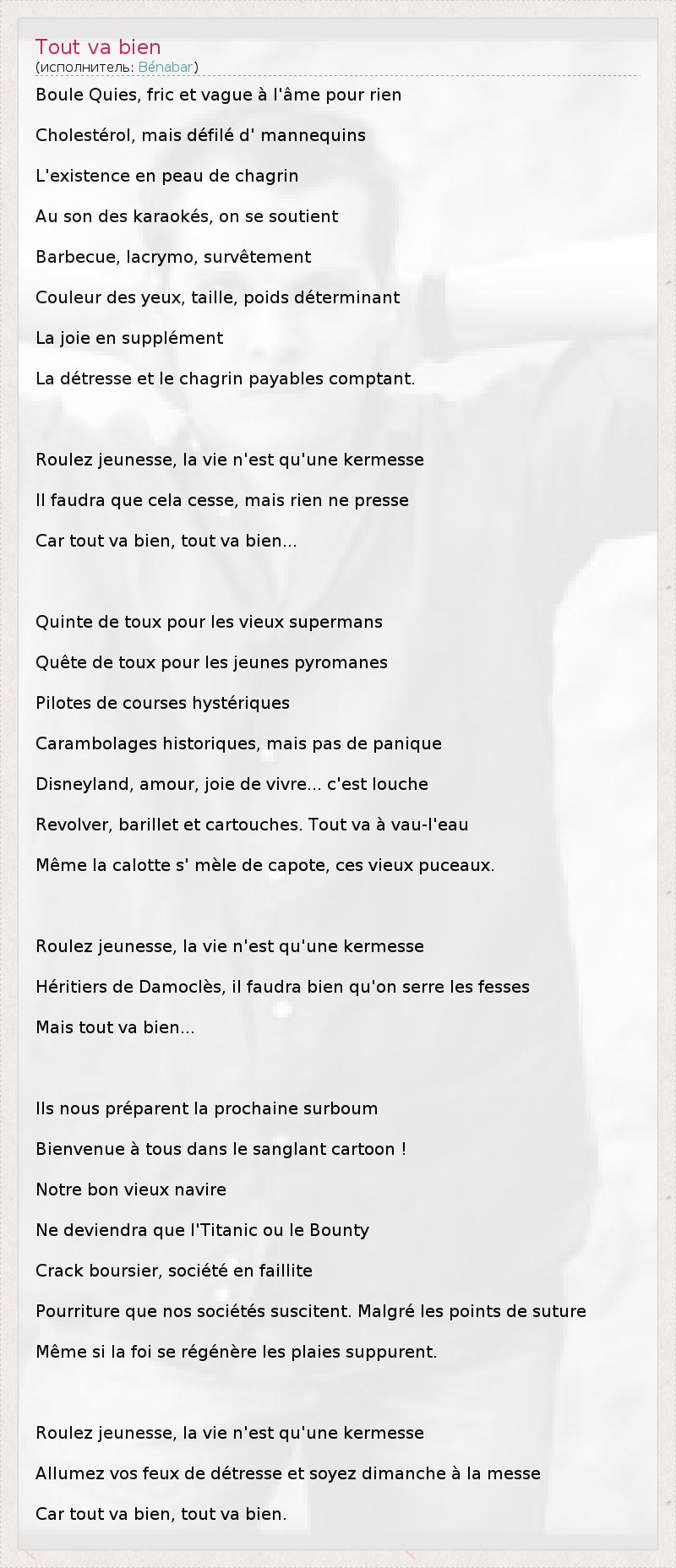 А как ты думаешь, о чем песня "Tout va bien" ?