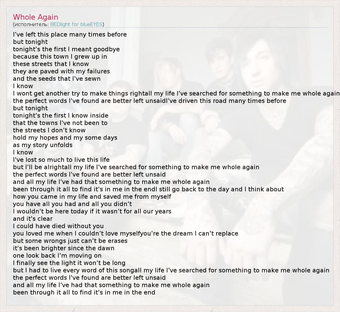 but I had to live every word of this songall my life I've searched for something to make me whole again
