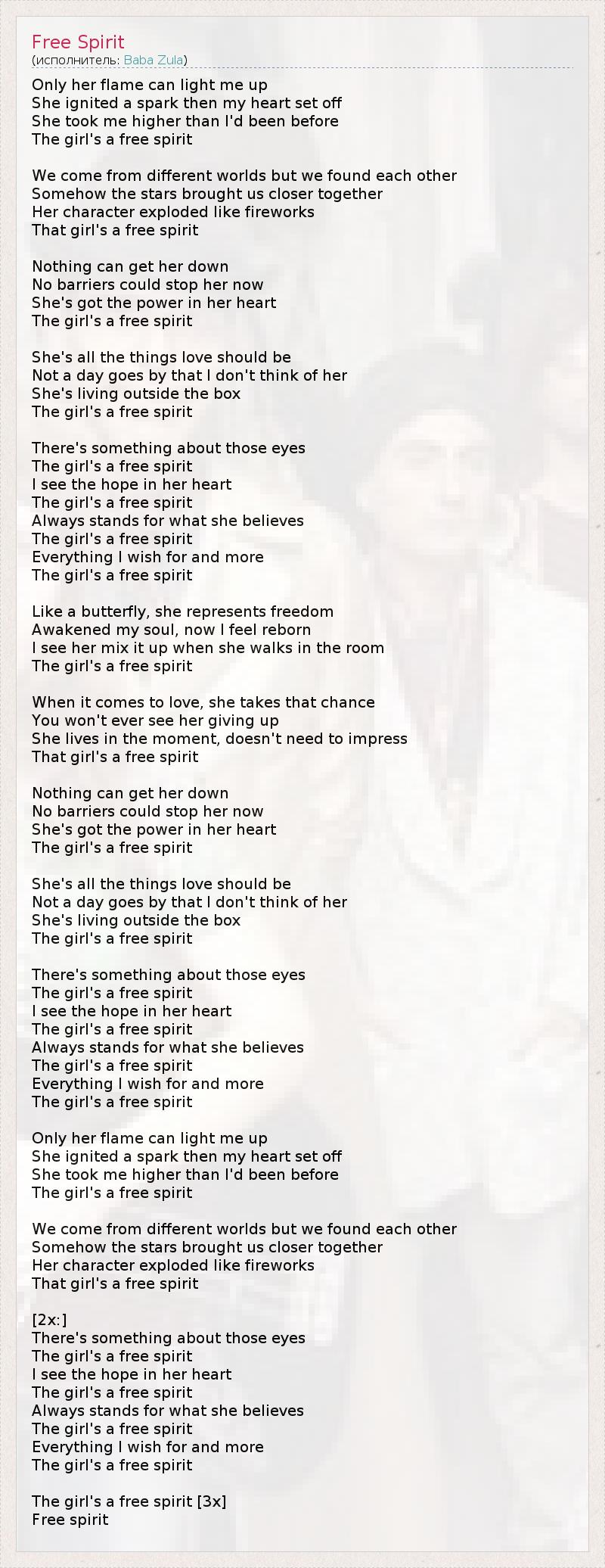 А как ты думаешь, о чем песня "Free Spirit" ?