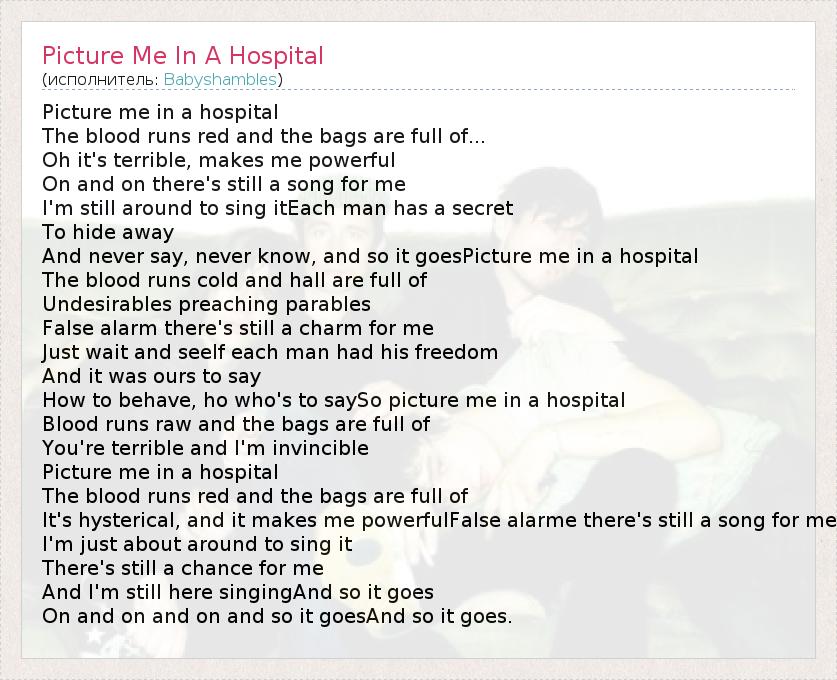 А как ты думаешь, о чем песня "Picture Me In A Hospital" ?