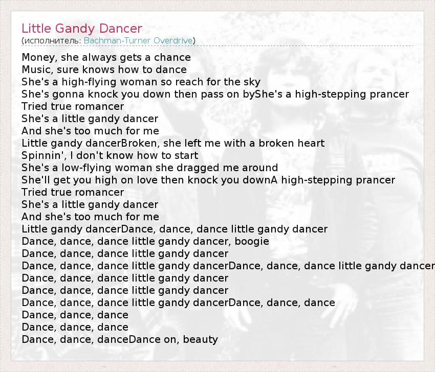 А как ты думаешь, о чем песня "Little Gandy Dancer" ?