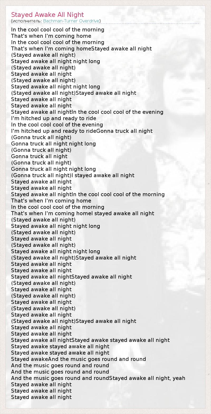 А как ты думаешь, о чем песня "Stayed Awake All Night" ?