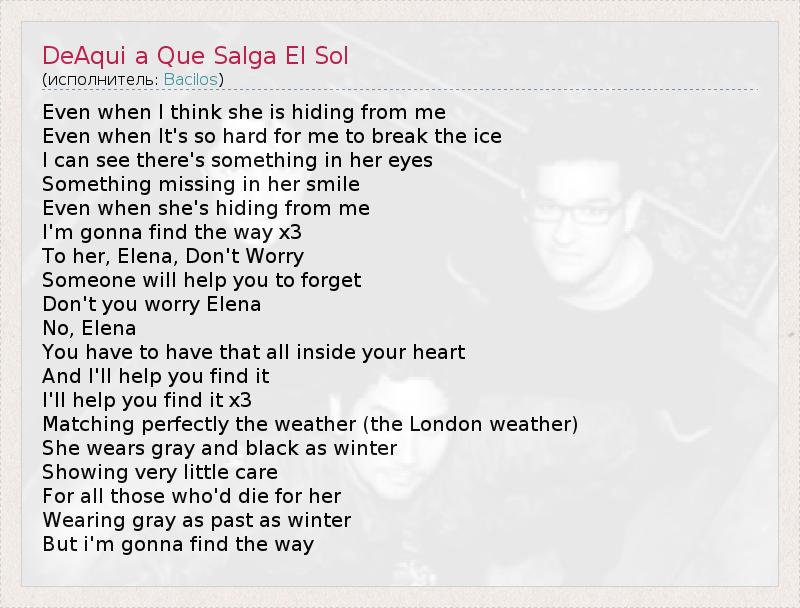 А как ты думаешь, о чем песня "DeAqui a Que Salga El Sol" ?