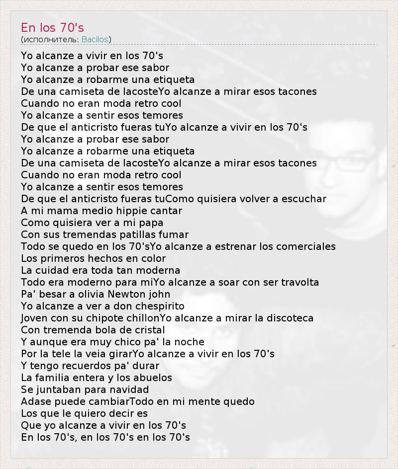 А как ты думаешь, о чем песня "En los 70's" ?