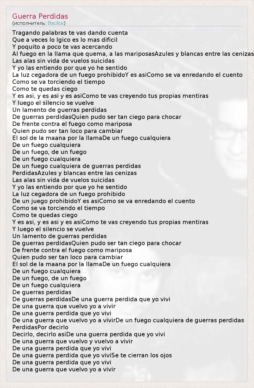 А как ты думаешь, о чем песня "Guerra Perdidas" ?