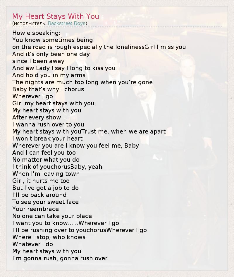 А как ты думаешь, о чем песня "My Heart Stays With You" ?