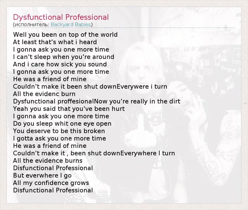 А как ты думаешь, о чем песня "Dysfunctional Professional" ?
