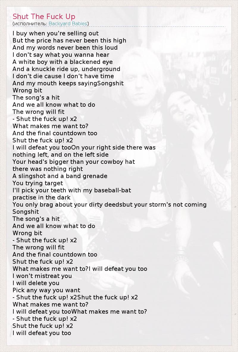 А как ты думаешь, о чем песня "Shut The Fuck Up" ?