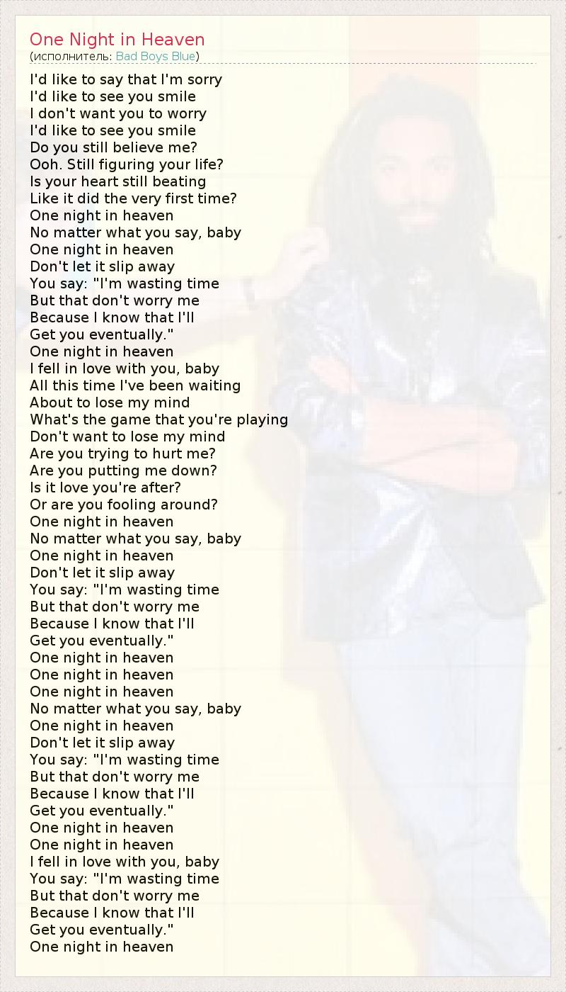 А как ты думаешь, о чем песня "One Night in Heaven" ?