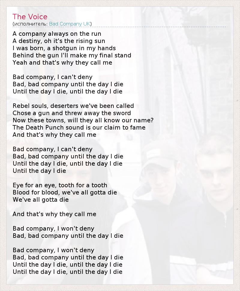 Это интересно:История Bad Company берёт начало во второй половине 1990-х — именно тогда четырёх музыкантов свёл вместе один из старейших dnb-лейблов Renegade Hardware. До объединения Мальдини и Уайт уже работали вместе под общим псевдонимом Absolute Zero, Штейн и Вожики также некоторое время работали в дуэте. Однако, лишь объединение в квартет раскрыло истинный творческий потенциал музыкантов и сделало их одними из классиков... продолжение