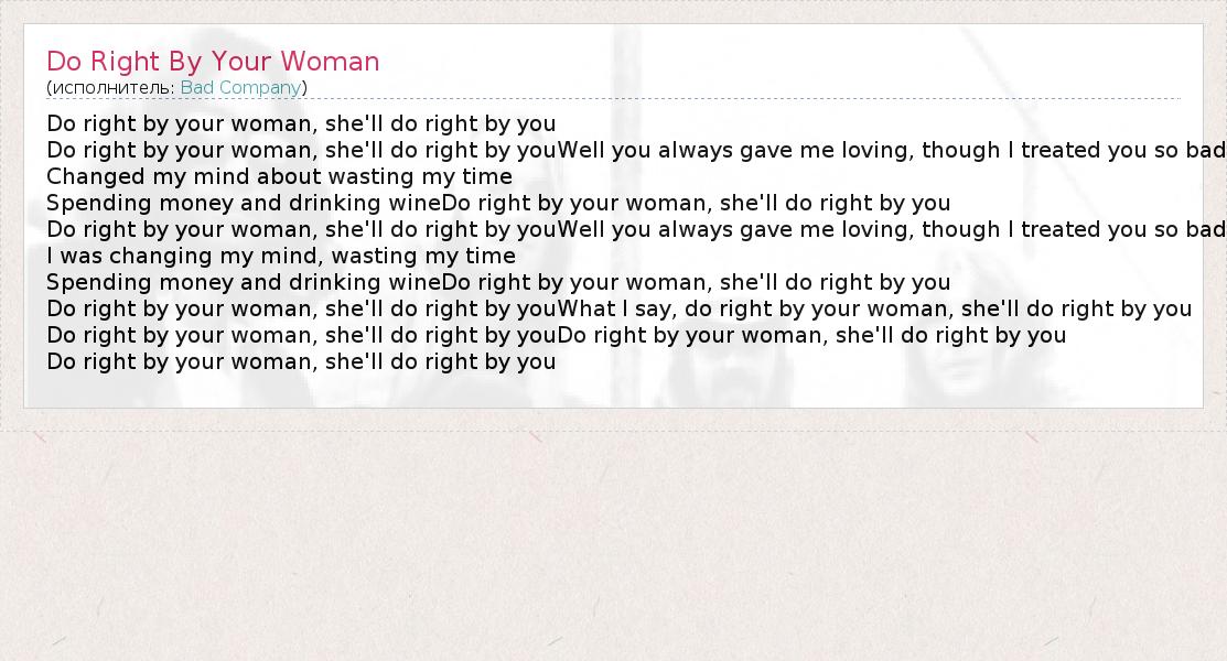 А как ты думаешь, о чем песня "Do Right By Your Woman" ?
