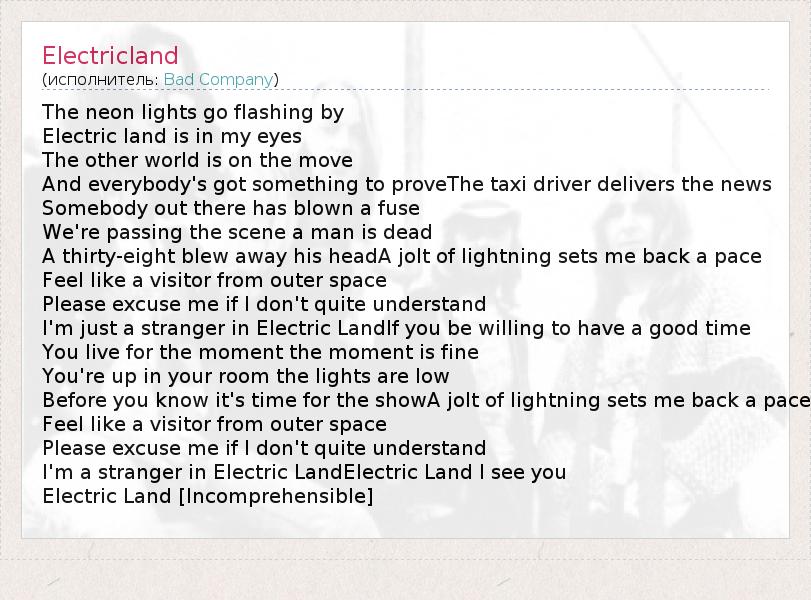 А как ты думаешь, о чем песня "Electricland" ?