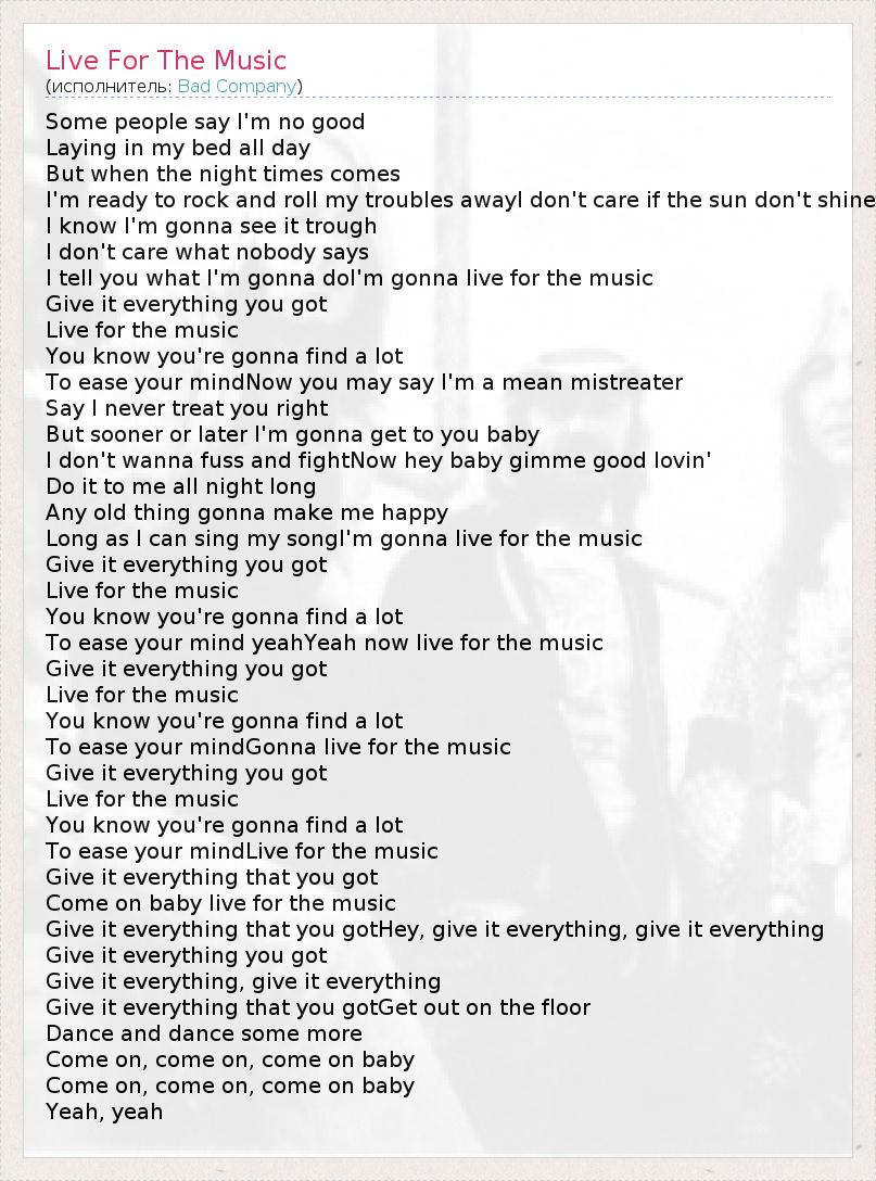 А как ты думаешь, о чем песня "Live For The Music" ?