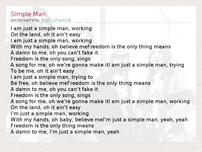 A song for me, oh we're gonna make itI am just a simple man, trying