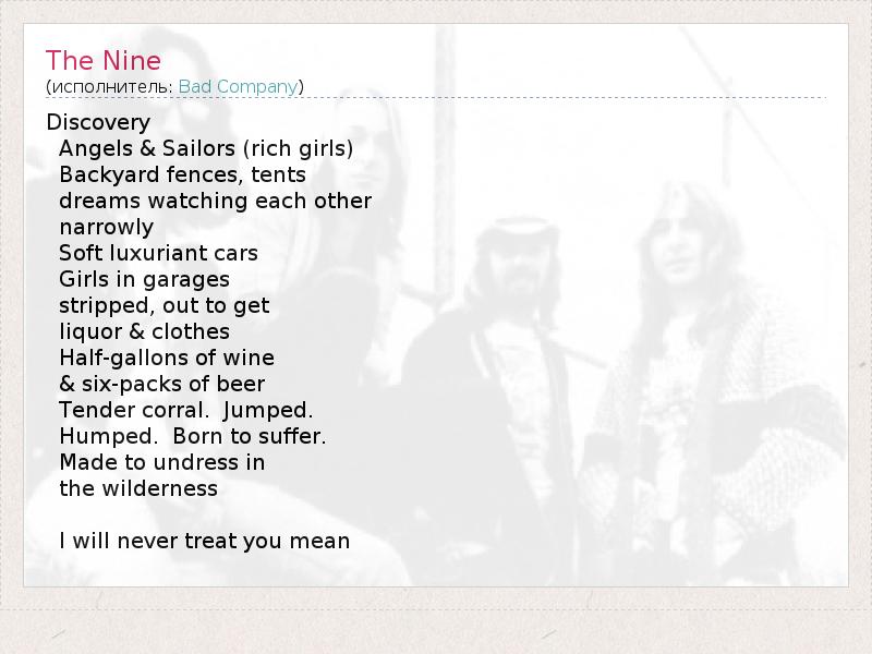 Это интересно:"Bad Company" являются одной из первых супергрупп мира: Роджерс и Кёрк прославились во "Free", Ральфс - в "Mott The Hoople", а Баррел - в "King Crimson". Поэтому не случайно, что музыканты с самого начала карьеры оказались под опекой Питера Гранта, менеджера "Led Zeppelin". Уже дебютный альбом "Bad Company" попал в британский Топ-3, и до конца 70-х группа пользовалась стабильной популярностью... продолжение