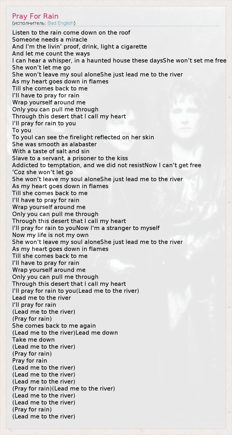 А как ты думаешь, о чем песня "Pray For Rain" ?