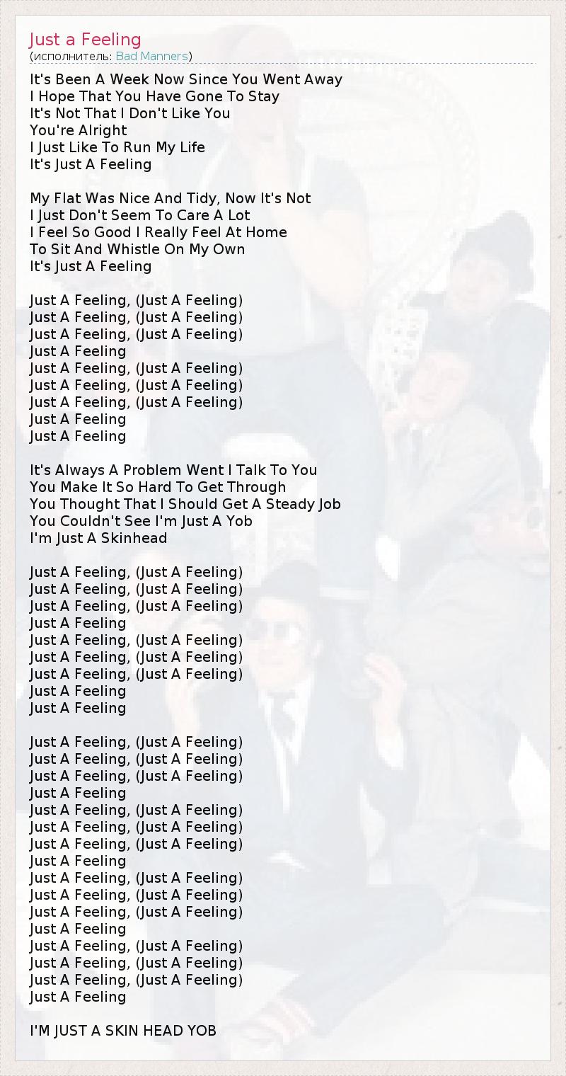 А как ты думаешь, о чем песня "Just a Feeling" ?