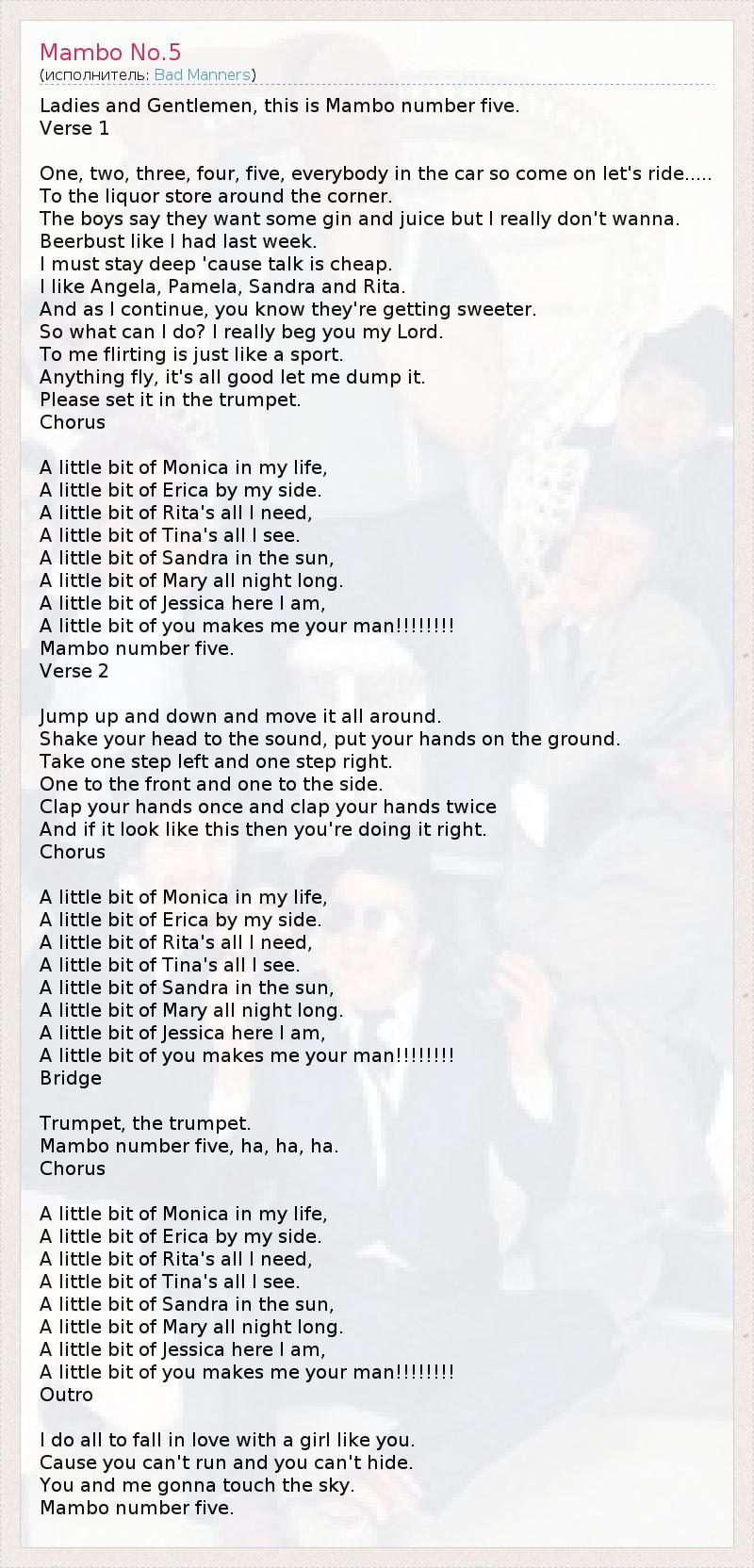 А как ты думаешь, о чем песня "Mambo No.5" ?