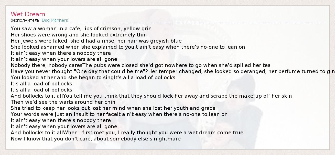 А как ты думаешь, о чем песня "Wet Dream" ?