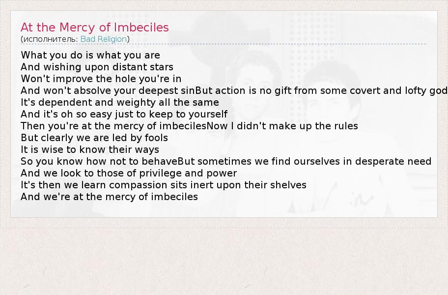 А как ты думаешь, о чем песня "At the Mercy of Imbeciles" ?
