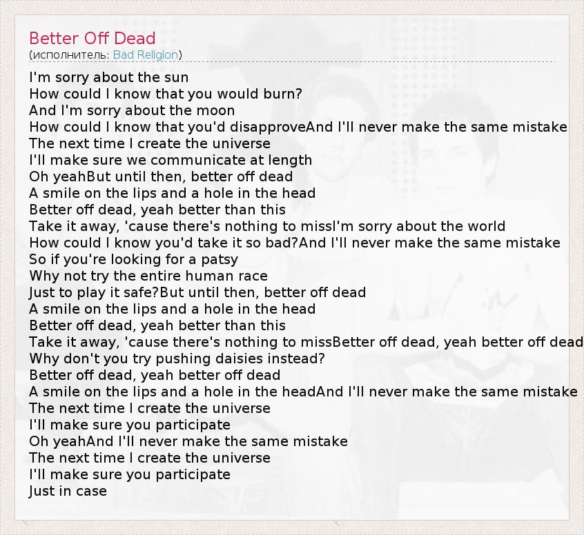 А как ты думаешь, о чем песня "Better Off Dead" ?