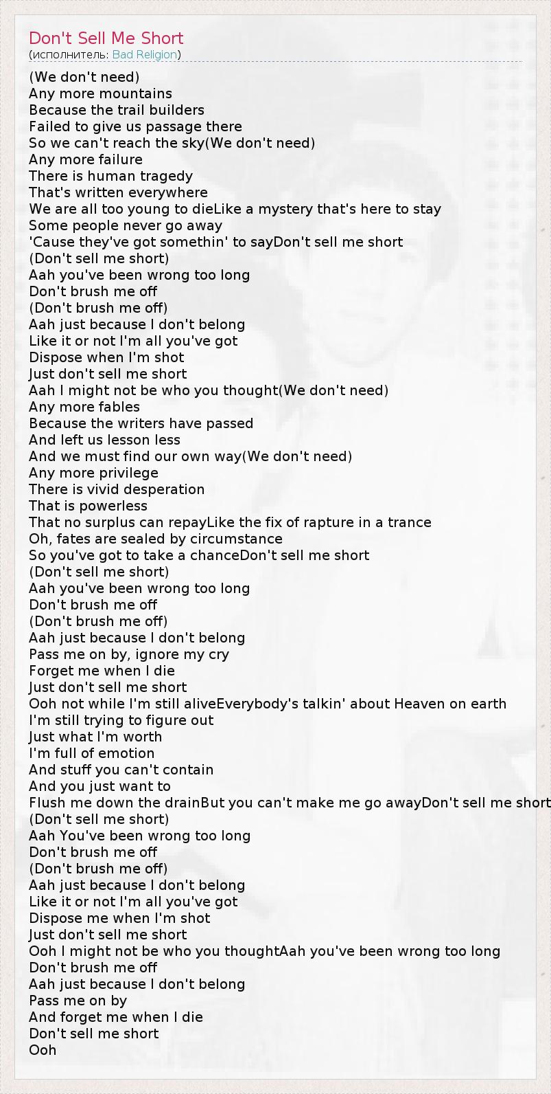 А как ты думаешь, о чем песня "Don't Sell Me Short" ?