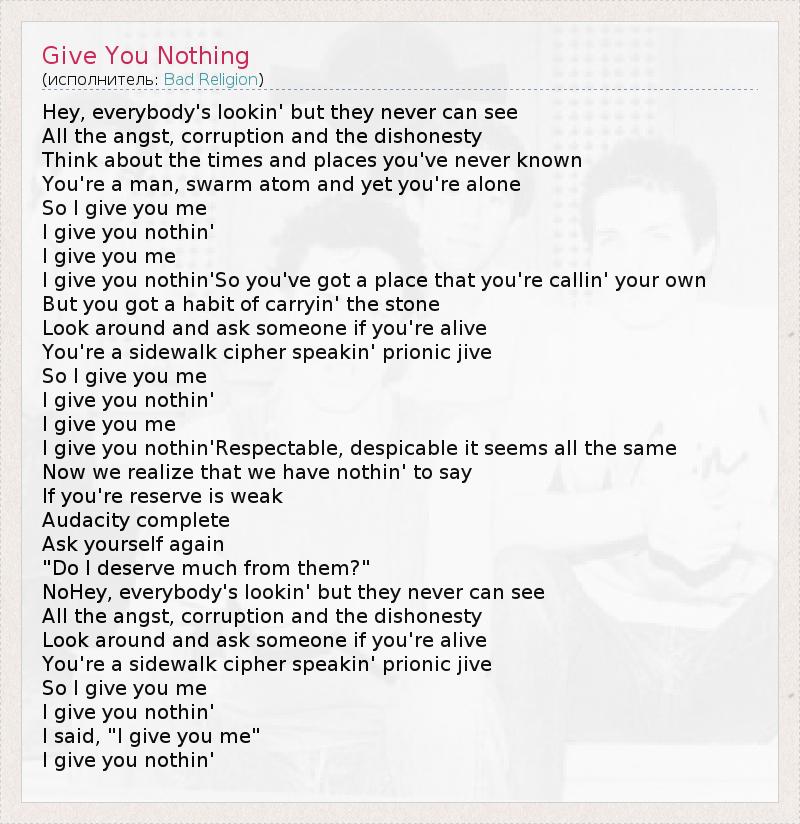 А как ты думаешь, о чем песня "Give You Nothing" ?