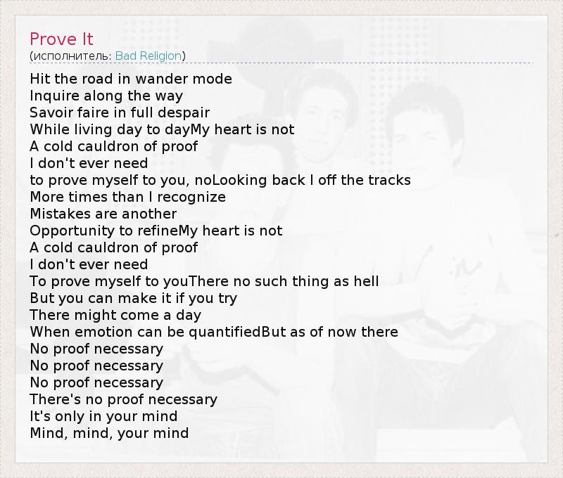 Это интересно:Bad Religion — американская панк-рок-группа из северного предместья Лос-Анджелеса, образованная в 1979 году.Отцы калифорнийского панка Bad Religion - одна из наиболее крупных фигур в истории панка и в тоже время один из самых коммерчески успешных американских панк-проектов. Серьезные и осмысленные тексты их песен, в которых речь часто идет о религии, политике, философии, экологии, выделяют BR из... продолжение