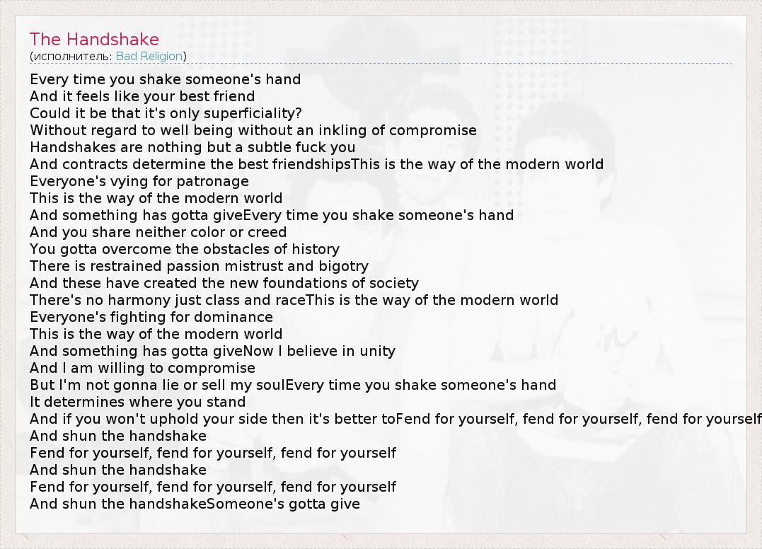 Это интересно:Bad Religion — американская панк-рок-группа из северного предместья Лос-Анджелеса, образованная в 1979 году.Отцы калифорнийского панка Bad Religion - одна из наиболее крупных фигур в истории панка и в тоже время один из самых коммерчески успешных американских панк-проектов. Серьезные и осмысленные тексты их песен, в которых речь часто идет о религии, политике, философии, экологии, выделяют BR из... продолжение