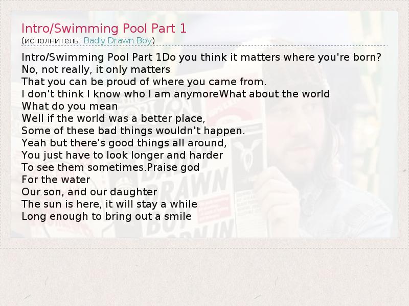 ГлавнаяИсполнителиBadly Drawn BoyIntro/Swimming Pool Part 1