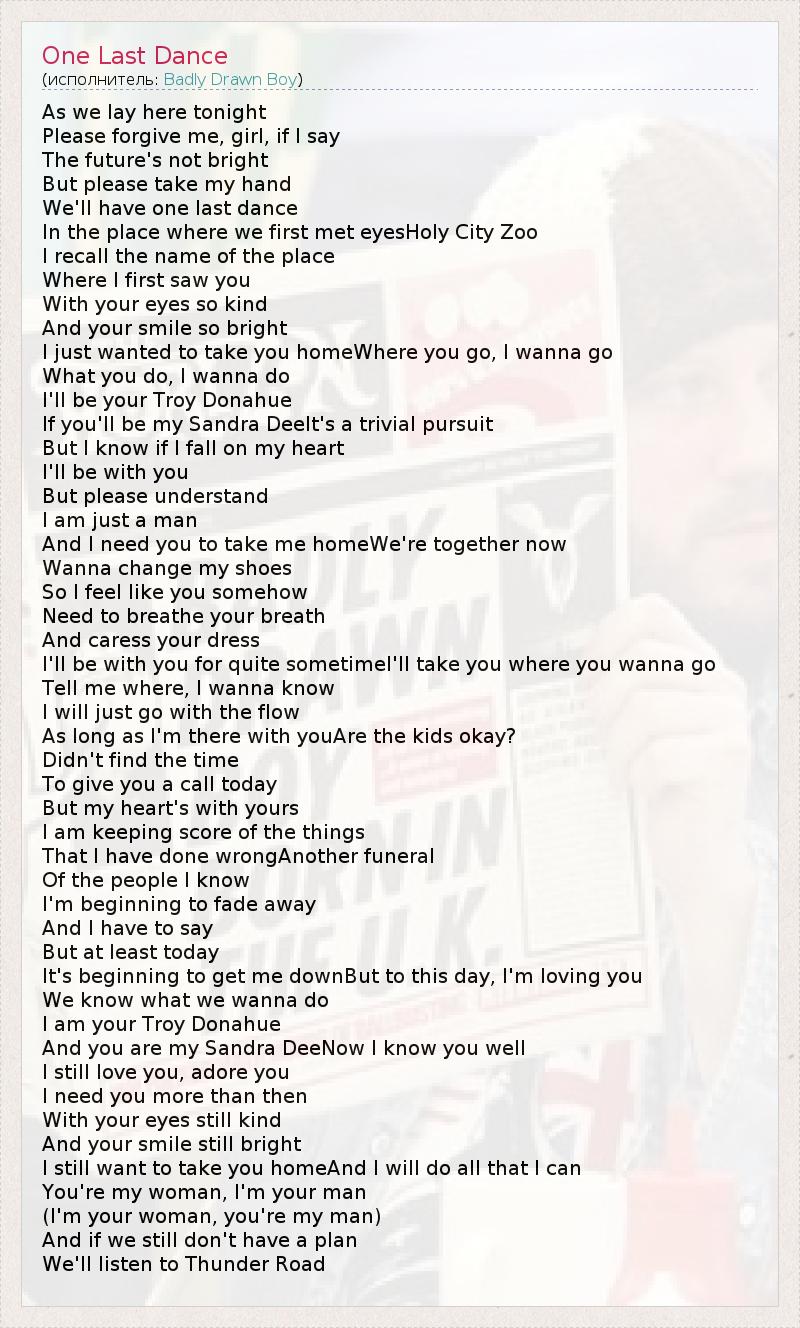А как ты думаешь, о чем песня "One Last Dance" ?